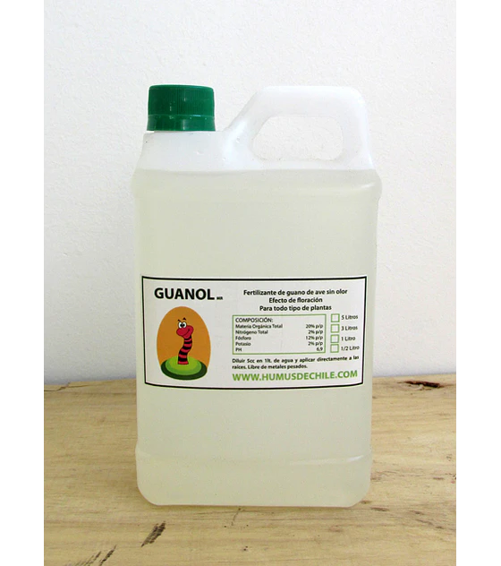 Solución de guano de ave sin olor. Rico en fósforo, acelera el crecimiento de todo tipo de plantas. Altamente eficiente en el mantenimiento de césped.