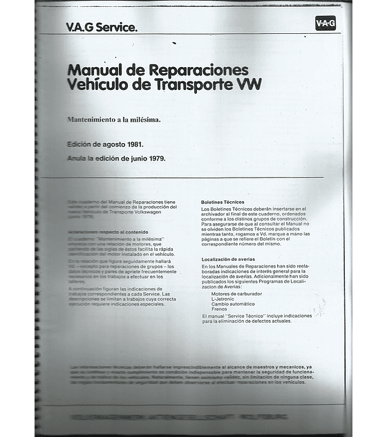este manual esta impreso en castellano, en alemania directamente por la VOLSKWGENWERK WOLFSBURG